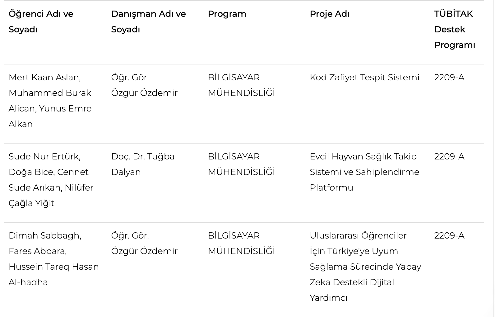Three outstanding projects from our Computer Engineering students have been selected for funding by the TÜBİTAK 2209-A Research Projects Support Program for Undergraduate Students!